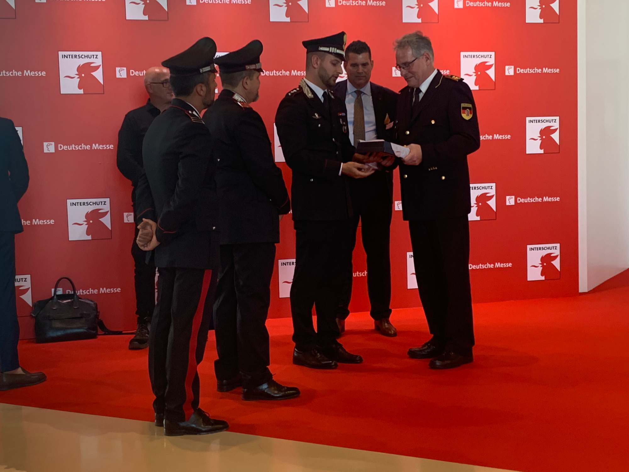 I riconoscimenti sono andati a Dirk Aschenbrenner, presidente dell’Associazione tedesca della protezione antincendio (vfdb), Karl-Heinz Banse, presidente dell’associazione tedesca dei vigili del fuoco (DFV), Heinz-Peter Brandenberg e Matthias Ludwig, esponenti di spicco del vfdb, e Bernd Heinold, responsabile INTERSCHUTZ di Deutsche Messe, nonché ad Andreas Züge, direttore generale di Hannover Fairs International GmbH, sede italiana di Deutsche Messe e, in forma collettiva, a tutto lo staff di Hannover Fairs International GmbH di Milano che, da dieci anni, dà un contributo essenziale all’organizzazione di REAS.