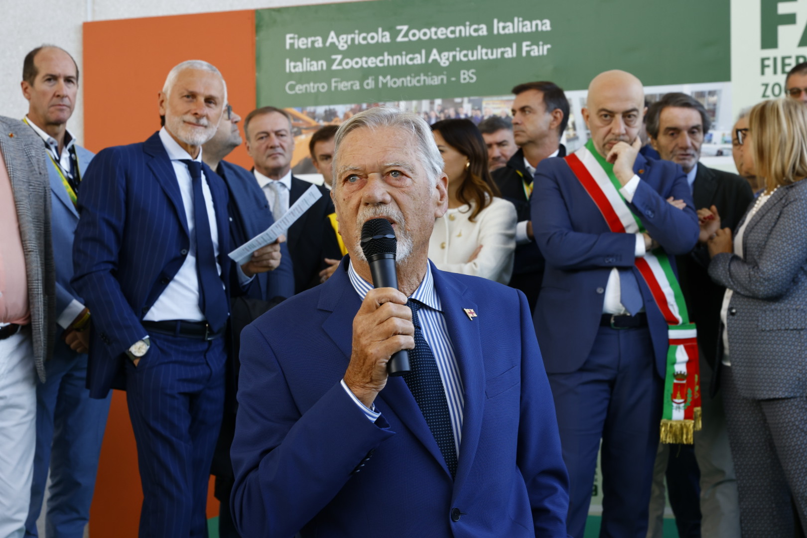 Tra le numerose autorità presenti oggi nel foyer dell’ingresso centrale, hanno preso la parola, nell’ordine, Marco Togni, sindaco di Montichiari, Attilio Fontana, presidente Regione Lombardia, Isabella Tovaglieri, europarlamentare, Oscar Lancini, europarlamentare, Cristina Almici, parlamentare e membro della Commissione Agricoltura, Daniele Mannattrizio, consigliere provinciale della Provincia di Brescia, Laura Facchetti, presidente Coldiretti Brescia, Giovanni Garbelli, presidente Confagricoltura Brescia, Alessandro Baronchelli, presidente Copagri Brescia, Fortunato Trezzi, presidente ANAFIBJ, e Marco Menni, vicepresidente vicario nazionale di Confcooperative.